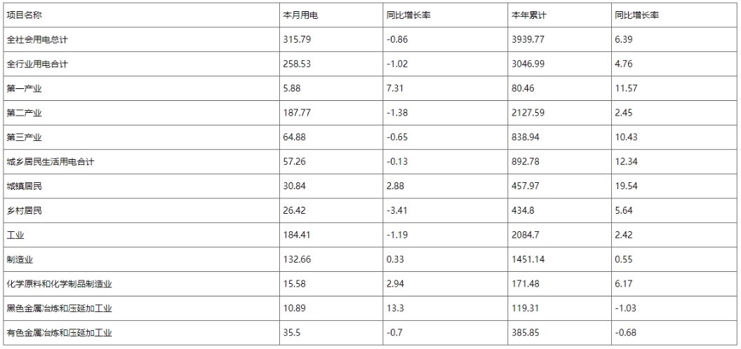 表2 2024年11月全社會(huì)用電量分行業(yè)統(tǒng)計(jì)表